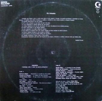 (Herberto Helder, Teixeira de Pascoaes, António Ramos Rosa, Irene Lisboa, José Régio, Sophia Mello Breyner, Ruy Belo, Maria Teresa Horta, David Mourão-Ferreira, António Botto, Natália Correia, Daniel Filipe, Mário Sá-Carneiro, Florbela Espanca, Mário Cesariny de Vasconcelos, Eugénio de Andrade, Carlos de Oliveira, Jorge de Sena, Fernando Pessoa). Contém um desdobrável de 6 páginas com as letras dos poemas (