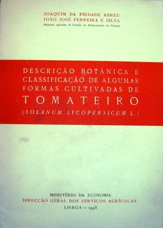 ABREU, Joaquim da Piedade/SILVA, João José Ferreira e. DESCRIÇÃO BOTÂNICA E CLASSIFICAÇÃO DE ALGUMAS FORMAS CULTIVADAS DE TOMATEIRO (Solanum Lycopersicum L.). Ministério da Economia. Direcção Geral dos Serviços Agrícolas. Lisboa, 1948. In-8.º gr. de 65-III pp. B. Ilustrado. € 20