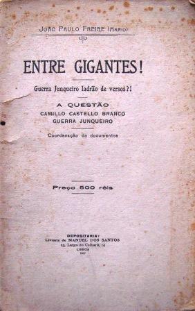 A Questão Camillo Castello Branco - Guerra Junqueiro. Coordenação de documentos. 1.ª edição. Lisboa, 1917. In-8º de 57-I págs. B. Exemplar da reduzida tiragem de 200 numerado (n.º 35) , com dedicatória e assinado pelo Autor. Raro