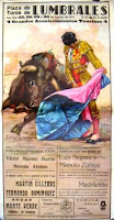 PLAZA DE TOROS DE LUMBRALES. 4 Grandes Acontecimientos Taurinos. Lit. Ortega S. A. Barco 12. Valencia. Dimensões 54x 97 cm. Em bom estado.