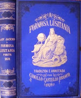 JACKSON, Catarina Carlota. A FORMOSA LUSITANIA. Versão do Inglez, Prefaciada e Annotada por Camillo Castelo Branco. Livraria Portuense, Porto, 1877. In-4.º de 448-II pp. Encadernação editorial. Ilustrado com 20 estampas fora do texto. Primeira edição deste estimado livro não só pelo texto propriamente dito, mas também pelas preciosas notas de Camilo, numa primorosa edição ilustrada à parte. Estimado e raro. Bom exemplar com pequeno restauro numa página sem afectar o texto. Pequena assinatura de posse. € 140,00